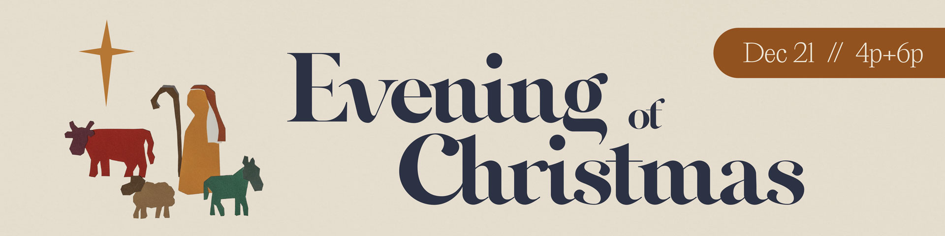 Sunday, December 21 – AN EVENING OF CHRISTMAS 4pm + 6pm in Worship Center